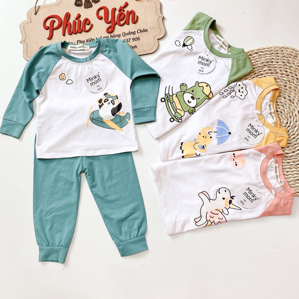 Bộ Dài Tay Cotton 100 % Minky Mom In Họa Tiết Động Vật Thú Lướt Ván ( 7-19kg) (SP001327) free ship